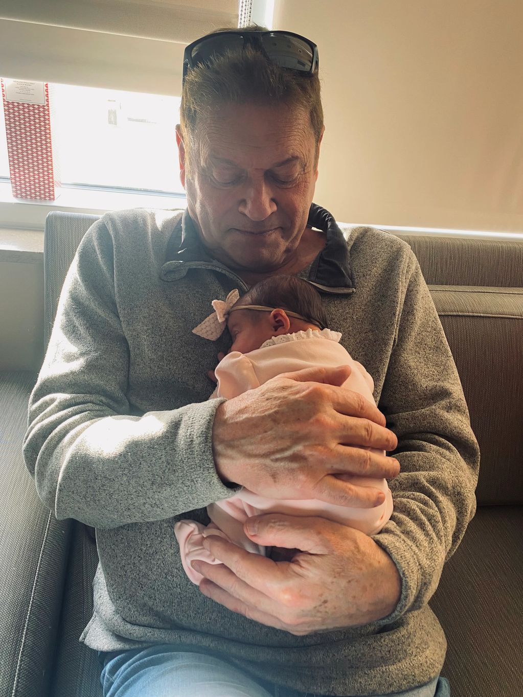 Bobby KC5YMC holding the new grandbaby,. Freya