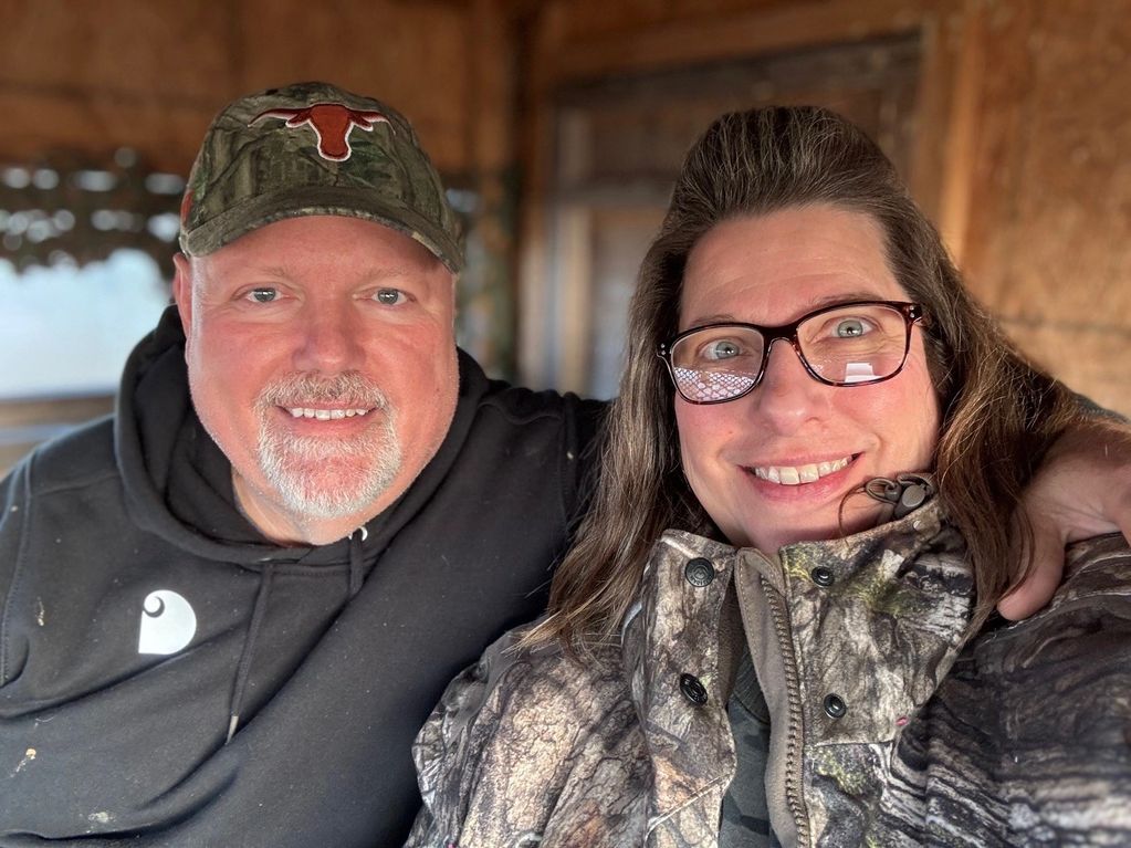 W5WES and XYL Shannon - 2025 opening weekend deer stand selfie.